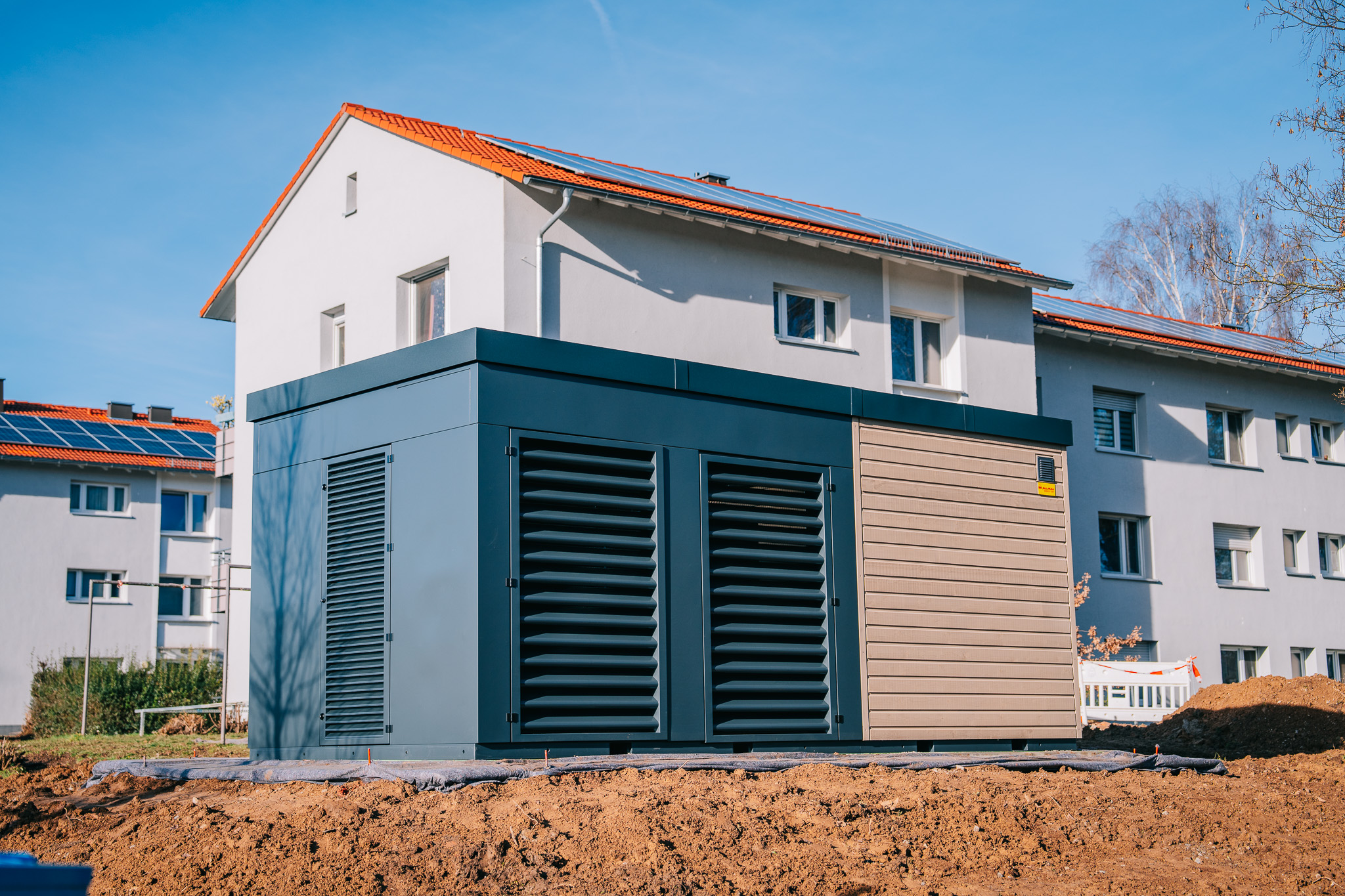 Das Projekt umfasst fünf Wohnblöcke mit jeweils zwei Häusern. Neben der Lieferung und Montage der Energy Units wurden auch die Fundament- und Leitungsarbeiten inklusive der Hauseinführungen übernommen. Die gesamte Montagezeit vor Ort betrug lediglich sechs Wochen. Die installierte Gesamtleistung liegt bei 200 kW.
